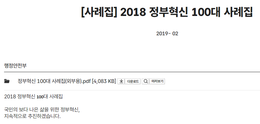 우리가 생각하기에 정부가 하는 일이나, 특히 공무원들이 하는 일들은 보통 수동적이고 사회변화를 못 따라간다는 편견을 갖고 있을 때가 많습니다. 하지만 수동적인 인상은 관련 규정이나 정책 등을 지켜야하는 일들이 많고, 관련 분야가 다양하기 때문에 행정관련 업무에서 생겨나는 편견이라고 생각됩니다. 하지만 실제 정부에서는 사회 변화에 따라가기 위하여 다양한 혁신도 변화를 이끌고 있습니다. 이러한 내용은 관련 업무를 하는 곳에서 배우고 벤치마킹할 필요가 있다고 생각합니다. 저 역시 업무를 하며 변화를 두려워하는 것을 견제하기 위하여 이러한 정보를 찾아보고는 합니다. 오늘부터는 그래서 다양한 변화 정부혁신 사례 100가지를 알아보는 시간을 갖고자 합니다.